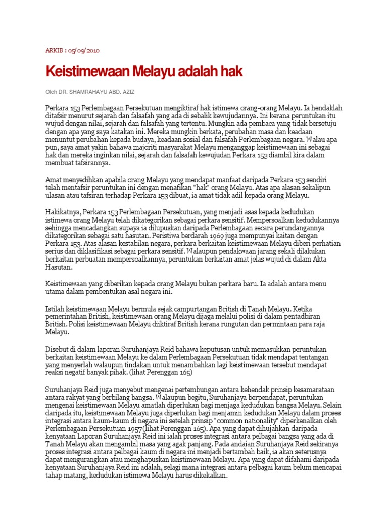 Hak Istimewa Orang Melayu Pdf - Najwa atiqah binti md nor 2013888868.. Ini dibuktikan apabila beliau menyatakan bahawa: O penubuhan jawatankuasa perhubungan masyarakat 1949 (clc) yang terdiri daripada pelbagai etnik telah. Konten khusus yang mengekspose tersebut seakan menjadi hak istimewa seorang pemain muda asal indonesia di negeri gingseng. Dalam hal ini, walaupun sesuatu keistimewaan diberikan kepada orang melayu dan bumiputera di sabah dan sarawak, kepentingan kaum lain juga hendaklah dilindungi. Najwa atiqah binti md nor 2013888868.