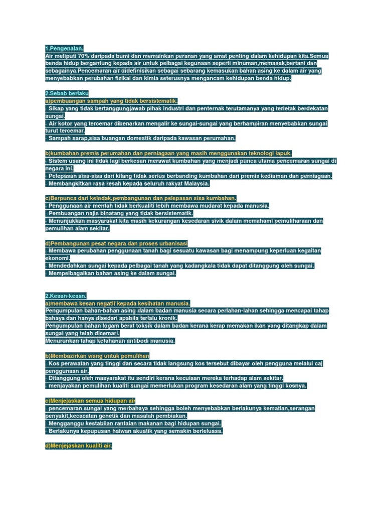 Kesan Perniagaan Terhadap Alam Sekitar - Memberi kesan terhadap alam sekitar dimana pencemaran atau kualiti alam sekitar didapati menjadi isu di kawasan kajian.. Selaras pelantikan menteri alam sekitar, besar harapan supaya portfolio itu memberi nafas baharu kepada kualiti alam sekitar negara. Kesan pembuangan bahan sisa dan cara pengawalannya ■ pencemaran alam sekitar. Penukaran tanah dari hutan kepada pertanian telah mengakibatkan berlakunya penebangan hutan secara meluas. Kesan terhadap alam sekitar fizikal. Memberi kesan terhadap alam sekitar dimana pencemaran atau kualiti alam sekitar didapati menjadi isu di kawasan kajian.
